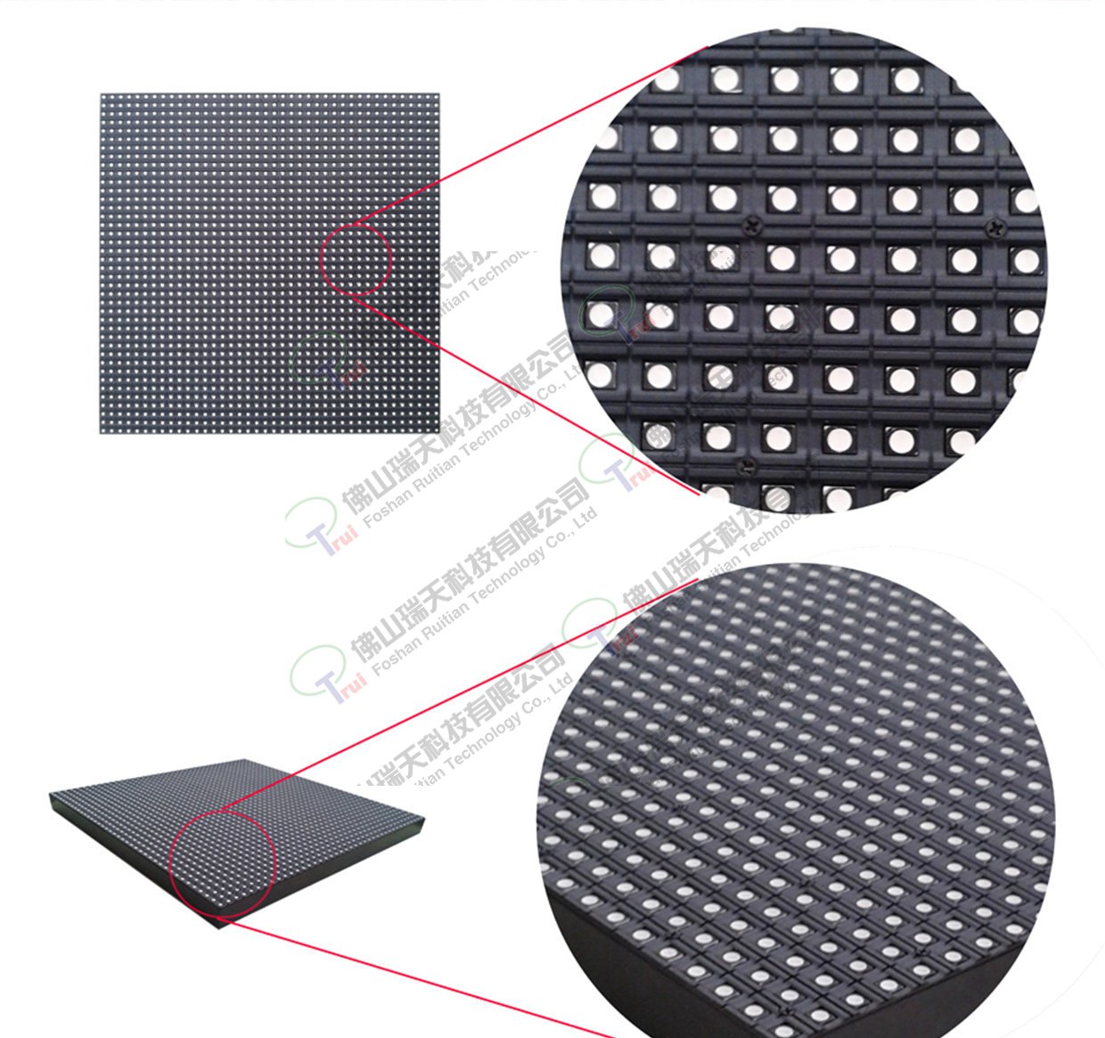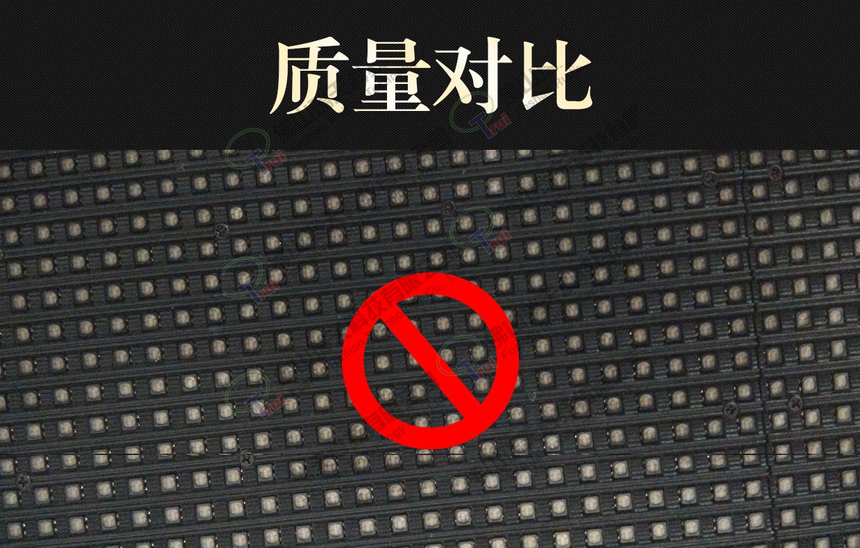 由于設計結構為三合一,三顆芯片距離很近,在同一個支架碗杯中混光,而不是三顆分立的橢圓形LED,故紅、綠、藍混光效果好于直插橢圓LED?屏,尤其適合于近距離觀看。